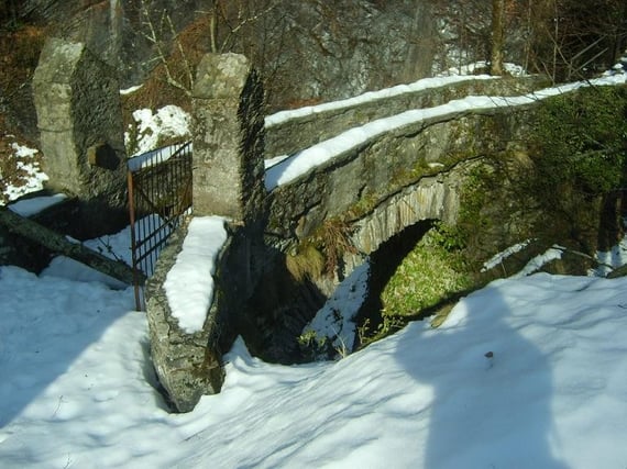 Am oberen Parkplatz bei der Brücke angekommen, dem Pfad links am Marienbild folgen ... Nach drei Minuten ist Cheggio erreicht. Ein paar Meter links Richtung Wiese,
